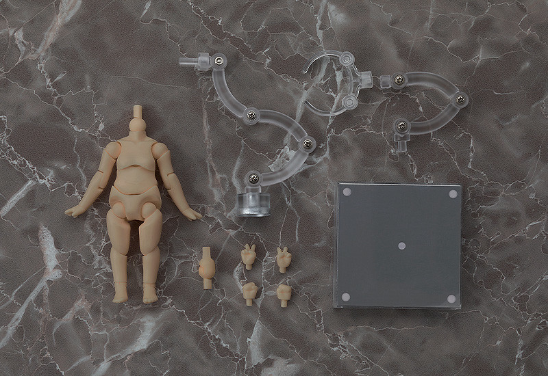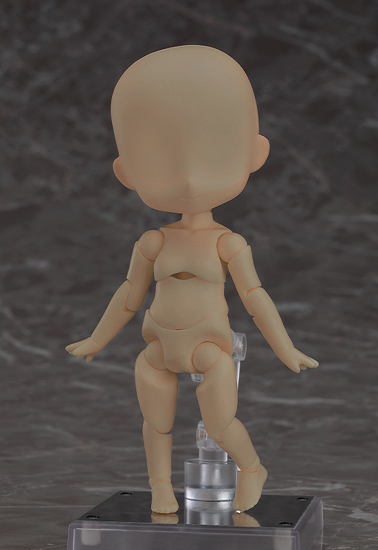 The base body of a Nendoroid Doll. Enjoy more ways to play with your Nendoroids! Introducing a new body for your Nendoroid dolls! The Nendoroid Doll series of palm-sized action figures feature the same heads as standard Nendoroids, but alternate doll-like bodies that are highly articulated and can easily be dressed up into different outfits! The feet of the Nendoroid Doll body feature magnets in the soles of the feet which allow for easy posing on the included magnetic base, but an articulated stand is also included allowing for more active poses! A longer neck joint is included which can be used for a better appearance when using certain fabric outfits. You can easily attach the head parts of previously released Nendoroids to give your favorite characters a whole new set of display possibilities!