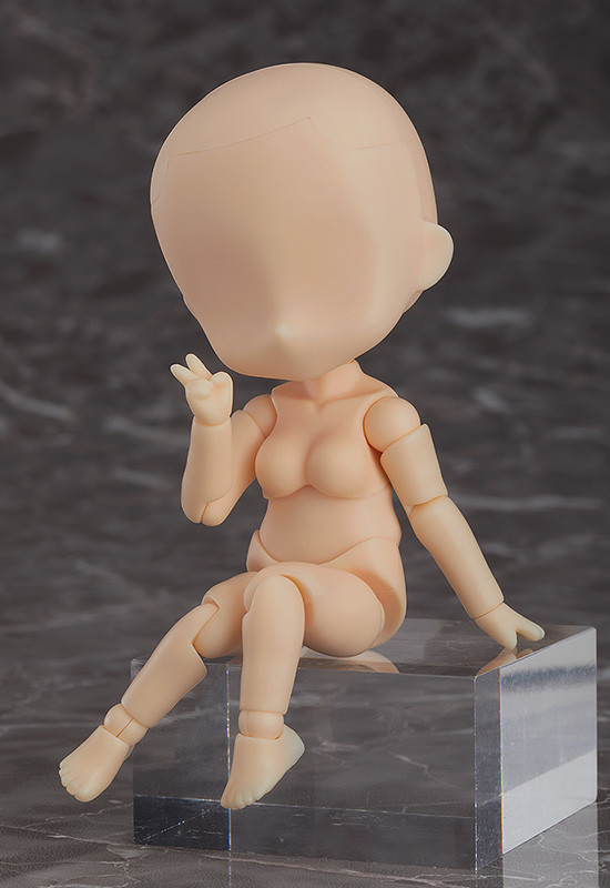 A new kind of Nendoroid Doll body! Introducing a new Nendoroid Doll body with an alternate body shape! The Nendoroid Doll series of palm-sized action figures feature the same heads as standard Nendoroids, but alternate doll-like bodies that are highly articulated and can easily be dressed-up into different outfits! The feet of the Nendoroid Doll body feature magnets in the soles of the feet which allow for easy posing on the included magnetic base, but an articulated stand is also included allowing for more active poses! A longer neck joint is included which can be used for a better appearance when using certain fabric outfits. You can easily attach the head parts of previously released Nendoroids to give your favorite characters a whole new set of display possibilities! *No Nendoroid head parts are included with this product. *Please note that some Nendoroids may not be compatible with this product. *No Nendoroid head parts are included with this product. *Please note that some Nendoroids may not be compatible with this product. Also available: Nendoroid Doll archetype: Woman (Cinnamon), Nendoroid Doll archetype: Woman (Cream), Nendoroid Doll archetype: Woman (Peach)
