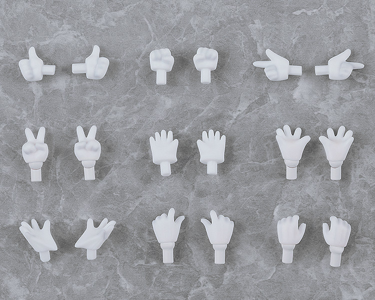 A set of gloved hand parts for use with your Nendoroid Dolls! Presenting a new hand parts set for use with your Nendoroid Dolls! These hands can be used with your Nendoroids as well! 5 different pairs of standard hands are included featuring various expressive hand parts. 4 additional pairs with joints at the wrists are also included, making for a total of 9 pairs of hand parts. Enjoy using them with your Nendoroid Dolls and Nendoroids! *Please note that some Nendoroids may not be compatible with this product.