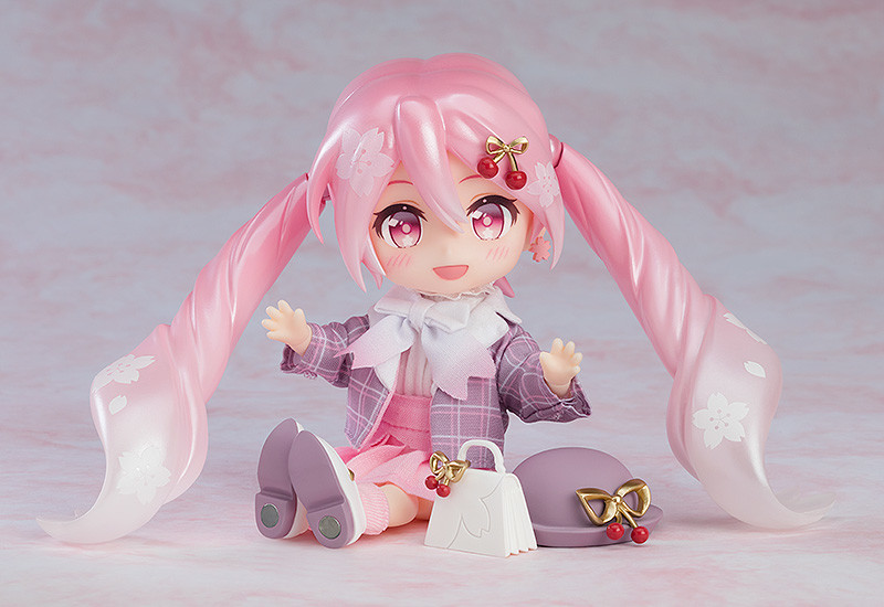 Sakura Miku in her Hanami outfit joins the Nendoroid Doll series! From “Character Vocal Series 01: Hatsune Miku” comes a Nendoroid Doll of Sakura Miku in a cute Hanami (flower viewing) outfit! The Nendoroid Doll series of palm-sized action figures feature the same heads as standard Nendoroids, but alternate doll-like bodies that are highly articulated and can easily be dressed-up into different outfits! Her cherry-blossom-inspired twintail hairstyle has also been captured in Nendoroid Doll form. Be sure to add this lovely Sakura Miku Nendoroid Doll based on an illustration by Rella of Miku on her way to watch the cherry blossoms to your collection! *Skin tone of this Nendoroid Doll is a special color to match that of the original character. Set Contents: Figure Blouse Skirt Jacket Underwear Hat Bag Shoes (with magnets in soles) Socks Interchangeable hand parts (pointing hands (left/right), bag-holding hand (right)) Magnetic base (for magnetic soled shoes) Articulated stand *Please note that the torso display is not included with this product.