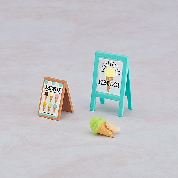An ice-cream-shop-themed parts collection comes to the Nendoroid More series! The Nendoroid More series was created to make Nendoroids even more enjoyable! The next item in the series is a collection of parts perfect for summer! Lineup: Ice Cream (Strawberry) x1 + Ice Cream Holding Hand (Left x1) + Stool x2 Ice Cream (Chocolate) x1 + Ice Cream Holding Hand (Right x1) + Triple Scoop Ice Cream x1 + Triple Scoop Ice Cream Holding Hand (Left x1) + Table x1 Ice Cream (Melon) x1 + Ice Cream Holding Hand (Left x1) + Sign x2 Ice Cream (Orange) x1 + Ice Cream Holding Hand (Right x1) + Display Piece x1 Ice Cream (Vanilla) x1 + Ice Cream Holding Hand (Left x1) + Cart x1 Ice Cream (Mint) x1 + Ice Cream Holding Hand (Right x1) + Counter (with 2 Countertops) Pair with your Nendoroids and Nendoroid Dolls and enjoy some ice cream together! Combine with the Nendoroid More Acrylic Stand: Ice Cream Shop (sold separately) available for preorder from the same time and enjoy summer with your Nendoroids! *May not be compatible with certain Nendoroids depending on the character design. Also available: Nendoroid More Acrylic Stand Decorations: Ice Cream Parlor
