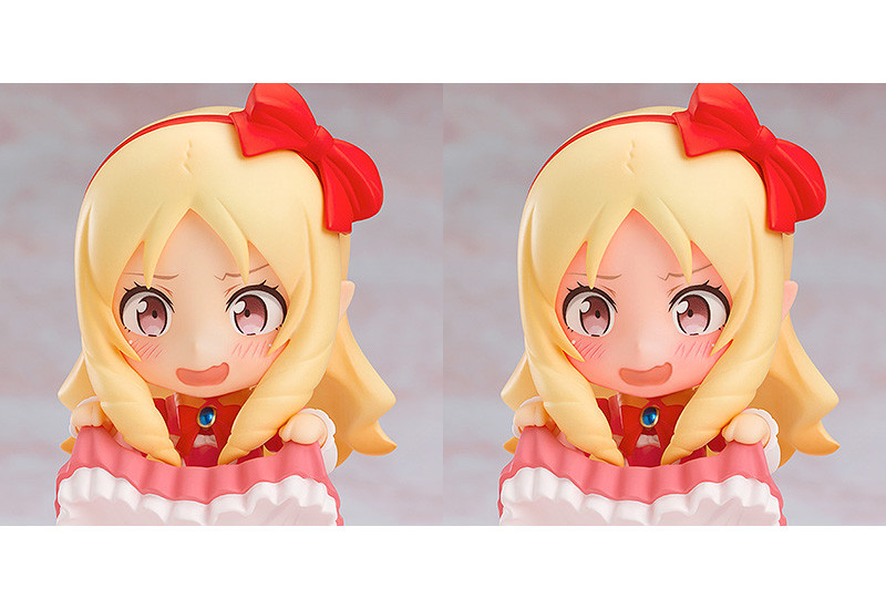 “Sales are the strength of an writer! Bow down to me, Oricon #1!” From the popular anime “Eromanga Sensei” comes a Nendoroid of the popular light novelist, Elf Yamada! She comes with three face plates including a cute smile, her iconic confident look as well as the embarrassed expression from the scene where she lifted up her skirt to show her panties to Eromanga sensei! The embarrassed expression also changes color with ultra-violet light, allowing you to capture her entire face going red similar to the scene in the series! Other optional parts include one of her light novel manuscripts together with “Summon Darkness” magic circle effect part! Be sure to recreate your favorite scenes from the series! UV Embarrassed Face Plate Notes The embarrassed face plate is designed to turn red when hit by ultra-violet light. Over a period of time this color change may no longer occur, or may cause permanent changes to color. The change in color will differ based on the temperature, weather and strength of UV light. Keep out of direct light when not in use.