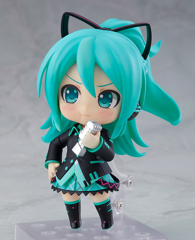 A “What if?” version of Hatsune Miku from an alternate reality. From “Character Vocal Series 01: Hatsune Miku” comes a Nendoroid of Hatsune Miku based on an illustration by KEI from the art exhibition “Hatsune Miku Chronicle”. Based on the theme “What if a design without twintails was chosen for the original Hatsune Miku design?”, the ponytailed version of Hatsune Miku has been brought into Nendoroid form! She comes with three face plates including a standard expression, a singing expression and an adorable angry expression with puffed out cheeks. A mic stand and a software box based on what could have been are both included as optional parts! Be sure to add this alternate reality version of Hatsune Miku to your collection!