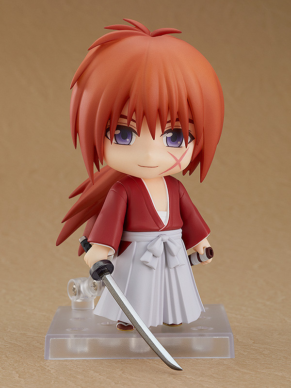 “What I am holding is a reverse-blade sword. It cannot be used to kill.” From the anime series “Rurouni Kenshin” comes a Nendoroid of Kenshin Himura! Face plates: Standard face Serious face “Oro” face Optional parts: Sword Dango skewer Combat stance lower-body part Other optional parts for different poses. *This product is a color variation of Nendoroid Kenshin Himura.