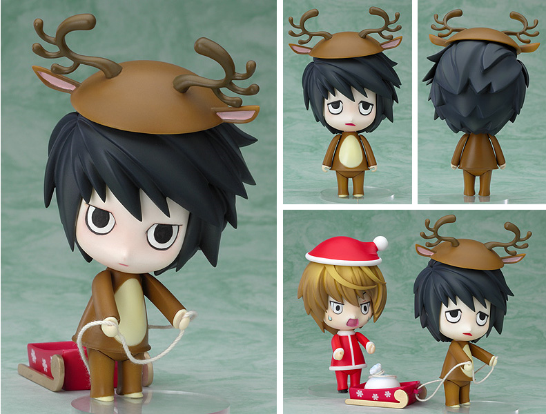 This reindeer’s got a pallid complexion in place of the usual red nose. The popular Nendoroid Death Note series makes a special reappearance just in time for Christmas with the Nendoroid L Reindeer version! Along with his usual intense glare, he’s got another face that shows his earnest desire to help out in any way he can, or maybe just an earnest desire to run away. He’s also got a sleigh to pull, though he doesn’t look very happy to be pulling it, and can complete a very silly Christmas scene when displayed with Nendoroid Shinigami Light’s Santa version, which comes out simultaneously.