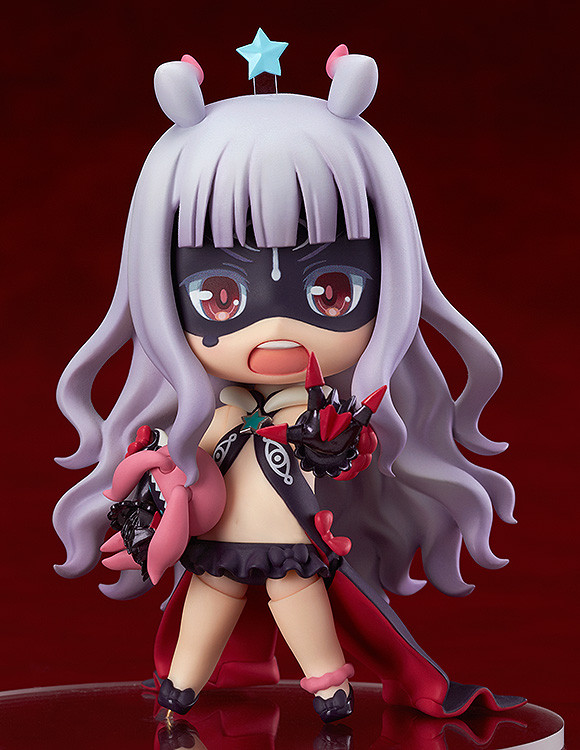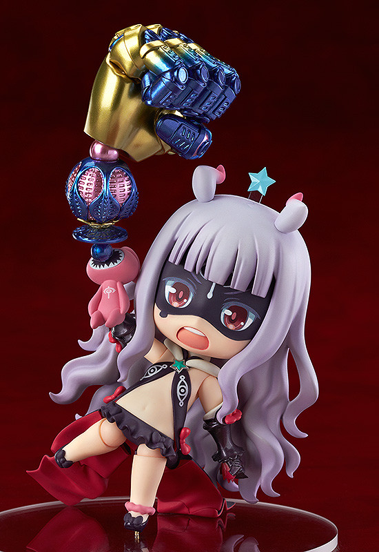 The light of Zvezda will spread across the world! From the anime series ‘World Conquest Zvezda Plot’ comes a Nendoroid of the secret society Zvezda’s mysterious leader, Lady Venera (Behepa)! Her standard face, shouting face and upset face all look adorable, even with her mask covering them up! Optional parts include the plushie doll ‘Galactica’ which she always keeps by her side, as well as her ultimate weapon, the Mechanized Giant Fist! She can take all sorts of popular poses from the series, and you can even pose her in her classic ‘conquest’ pose!