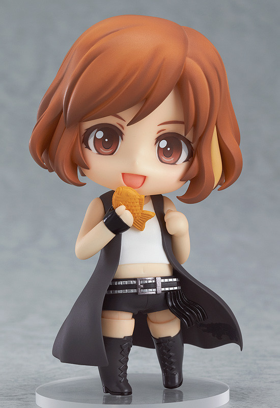 Commemorating ten years of May’n! In commemoration of the upcoming ‘May’n Road to 10th Anniversary Japan & World Tour 2014-2015 “dots and lines”‘ comes a Nendoroid of May’n herself! Her well-known hairstyle and trademark short pants have all been converted into Nendoroid size as accurately as possible for fans to enjoy! Her microphone is included together with special hand parts based off actual poses from her live performances, allowing you to pose her ready to perform on stage! A hand towel from her live performances is also included for her to hold! On the other hand, she also comes with a delicious taiyaki allowing you to pose her as the (self-proclaimed) Goodwill Ambassador for Taiyaki! Simply choose between the serious or the more playful May’n whenever you like!