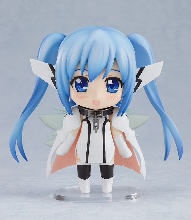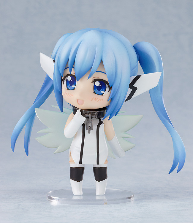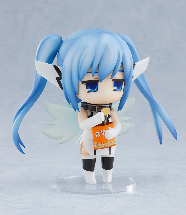 Nendoroid Nymph is falling down from the heavens to bring back Ikaros! From the popular anime series with a movie on the way, ‘Sora no Otoshimono Forte’, comes another Nendoroid – this time it is the Electronic Warfare Angeloid, Type Beta – Nymph, who came down to Earth in an attempt to bring Ikaros back. She comes with three expressions – a standard smiling face, an angry face struggling to hide her embarrassment and finally a chibi face, for all the famous chibi scenes from the anime. She also comes with optional parts including a packet of chips for her to munch on, as well as a choice between her normal wings and her cut wings – giving you all sorts of different ways to display her!