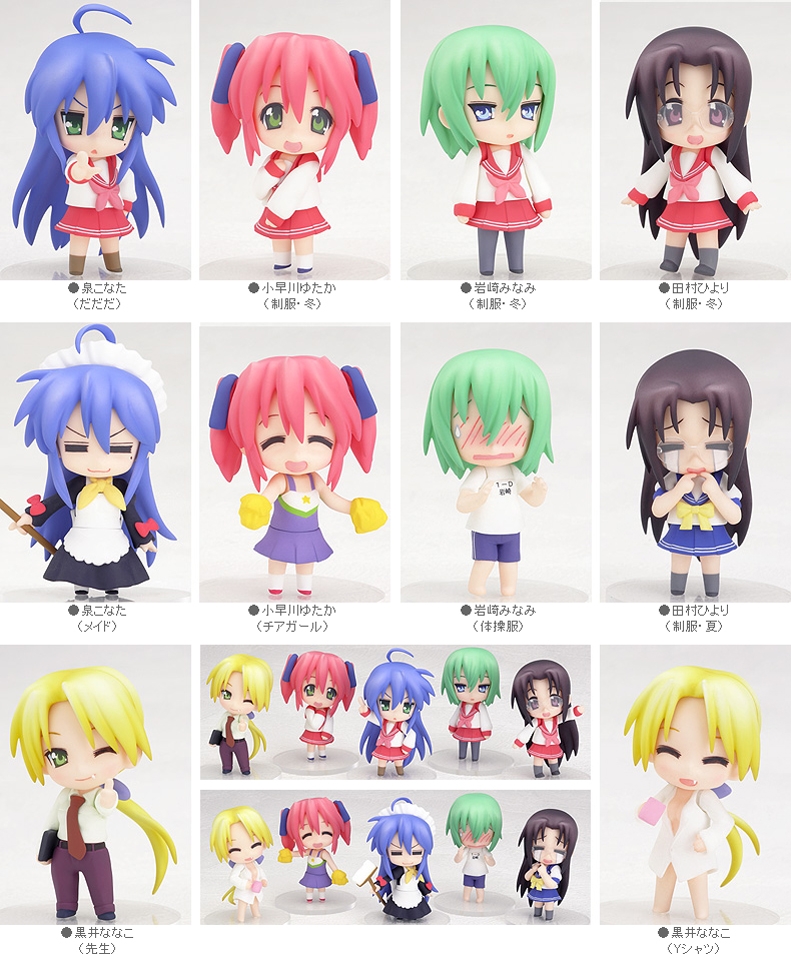 Season two is here! Are they still petite? You bet! The small and cute action figures, the Nendoroid Petite series, returns with another set from Lucky Star. Apart from Konata Izumi, the lineup is completely different from the first set, with more minor characters like Yutaka Kobayakawa and Nanako Kuroi getting their chance to shine. Each has one figure dressed in the trademark school uniform, but they all have a different alternate costume such as a cheerleader outfit or maid uniform, making them perfectly collectible and perfectly adorable. Collect them all, and look forward to more Nendoroid Petite fests, coming soon!