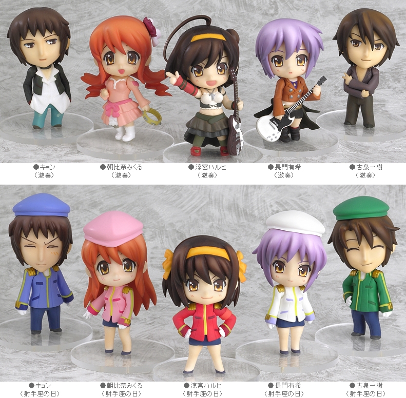 They’re rocking out and playing games in their third set! The Nendoroid Petite series returns with another cute and soft set of Haruhi trading figures! Based on the concept illustration “The Music of Suzumiya Haruhi” and the TV series’ 11th episode, “The Day of Saggitarius,” respectively, The five members of the SOS Brigade have been shrunk to a petite size once again! With ten in all, plus one secret figure, your desire for these versatile little character is sure to grow!