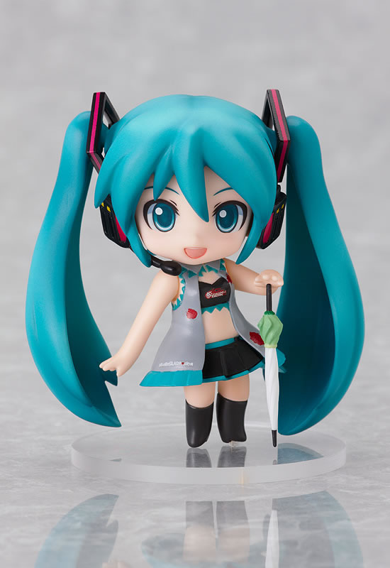 A petite and cute race queen set! The Nendoroid Petite: Vocaloid RQ Set that has been seen on the official stgt support site and blog, as well as many events, is now being released as official goods from Miku Hatsune and Studie GLAD Racing. The three most popular Vocaloid ladies: Miku Hatsune, Rin Kagamine and Luka Megurine are all posed in the cutest ways whilst wearing racing queen outfits that are actually currently in use by racing queens. An umbrella is also included But that’s not all! A pull-back car based on the Miku GT Car that was actually used in races is also included! You can display them all together to recreate a scene from the racing tracks. The pull-back car comes in two colors – black or white. Pick whichever you’d prefer!