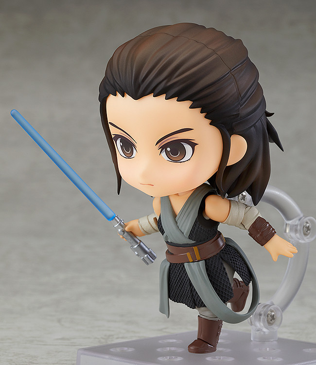 Rey joins the Star Wars Nendoroid series! From the popular movie “Star Wars: The Last Jedi” comes a Nendoroid of the main character of the new trilogy, Rey! She comes with two face plates including a serious expression and a smiling expression, which capture both her confidence and cuteness in a single figure! Just like the previously released Star Wars Nendoroids, the figure is fully articulated allowing for all sorts of display options! She comes with two different lightsaber blade parts – one standard blade and one that captures the afterimage of the blade as it moves for battle poses! Be sure to display her with the previously announced characters in the series!