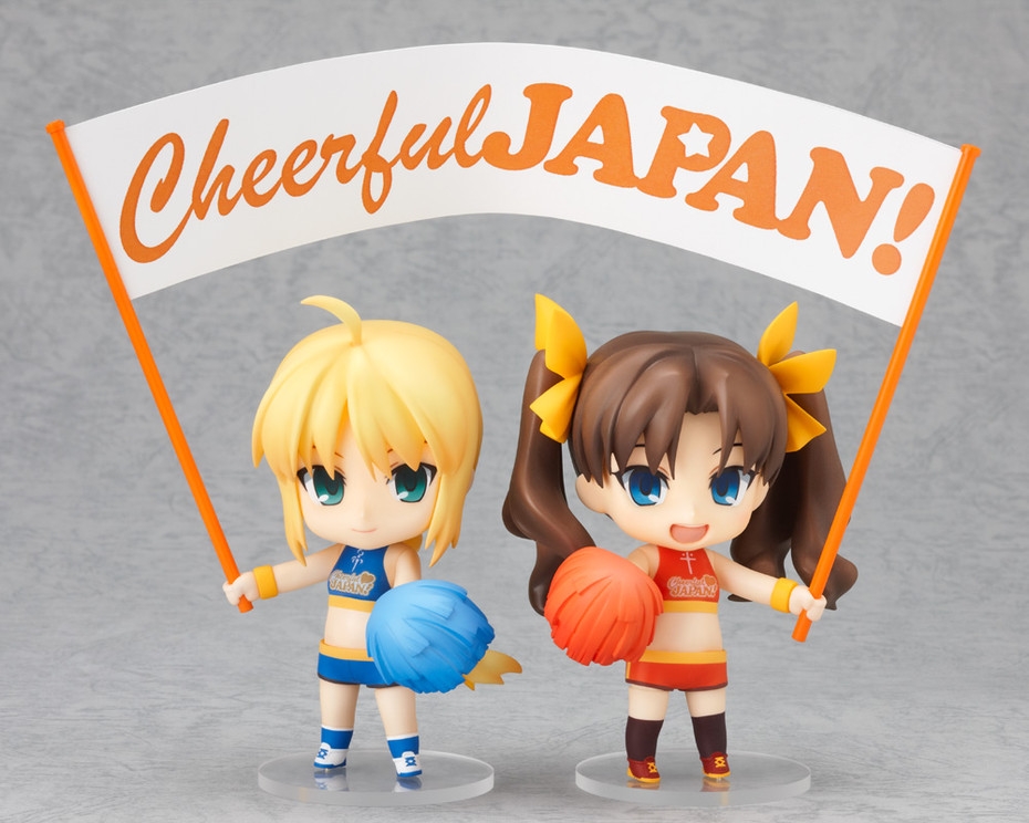 Saber and Rin are ready to cheer everyone on! The eighth product to join the Cheerful JAPAN! project is a set of two Nendoroids of TYPE-MOON’s popular characters – Saber and Rin Tohsaka, both wearing adorable cheerleader outfits! The Nendoroids are based on an illustration by the original illustrator of the two girls, Takashi Takeuchi – just shrunk down to adorable Nendoroid size! Both come with pompons that correspond to their image colors, as well as a flag they can both hold up together! They also come with the popular lazy expressions and extra parts that let them sit down! From the energetic cheering poses down to the tired out sitting pose after the cheering – these are two Nendoroids with a ton of fun poses to play around with! For each sale made, Good Smile Company will donate 2000JPY to aid relief efforts.