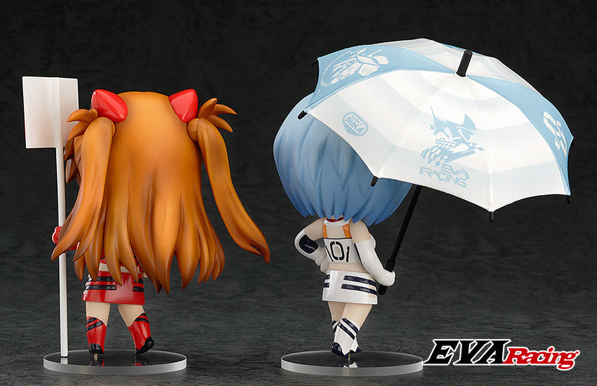 The very first Nendoroid of Shikinami Asuka Langley! Dressed up in her EVANGELION RACING outfit! From ‘EVANGELION RACING’ comes a Nendoroid of Shikinami Asuka Langley: EVANGELION RACING Ver.! She is posed wearing the cute and sexy race queen outfit made to look similar to her plug suit from the series! Optional parts include a grid board and signboard needed for any race! You can stick any number you like on the signboard allowing for a little extra customization as well! She comes with both a smiling expression and a shouting expression to cheer the drivers on! EVANGELION RACING is a racing team that was created as a tie-up when the new EVANGELION movie was made. The team takes place in popular Motorsports races in Japan using a car painted the colors of Unit 01! The teams race queens are modelled off the ‘Children’ from the series! Official Site: http://eva-racing.com Planning/Operation: RUN’A Entertainment, Inc.