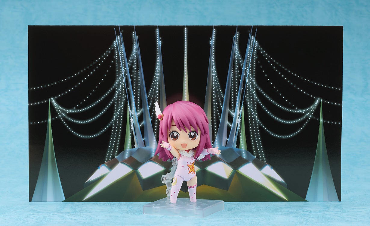 "Wings are my dream, they'll take me to the sky" From the anime "Kaleido Star" comes a Nendoroid of Sora Naegino! Face plates: · Smiling face · Doubtful face · Funny face Optional parts: · Trapeze · Fool · Jonathan · Kaleido Stage background inner paperboard · Other optional parts for different poses.
