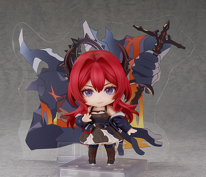 “I am Surtr. Are you the Doctor they mentioned?” From the popular smartphone game “Arknights” comes a Nendoroid of the mysterious Sarkaz girl Surtr. Face plates: Smiling face Combat face Staring face Optional parts: Laevatain Ice cream Giant arm Giant background sheet Other optional parts for different poses.