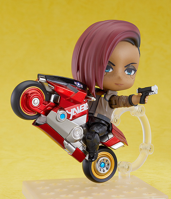 Who are you? From the highly anticipated action-adventure RPG Cyberpunk 2077 comes a Nendoroid of the protagonist, V! Nendoroid V comes fully articulated sporting the leather jacket seen in the game trailers, complete with SAMURAI logo on the back. For cyberware, Nendoroid V is equipped with Nanowire and Mantis Blade hand parts. Also included are 2 weapons so you can enjoy creating a variety of scenes. The deluxe set includes 3 additional weapons, a flame effect part, and the unforgettable Yaiba Kusanagi bike! Be sure to add Nendoroid V to your collection and enjoy bringing the Cyberpunk 2077 world to life! Set Contents: Back and Front Hair Parts Face Plates (×2) Body Right Arm Part (Articulated) (×1) Right Hand Parts (×4) Left Arm Part (Articulated) (×1) Left Hand Parts (×3) Right Leg Part (Articulated) (×1) Left Leg Part (Articulated) (×1) Nanowire with Hand Parts Mantis Blade Hand Parts (×2) Arasaka JKE-X2 Kenshin Kang Tao G-58 Dian Militech M-10AF Lexington Militech Ajax Budget Arms Flamethrower Yaiba Kusanagi Motorcycle Also Available: Nendoroid V: Male Ver.DX, Nendoroid V: Male Ver., Nendoroid V: Female Ver.