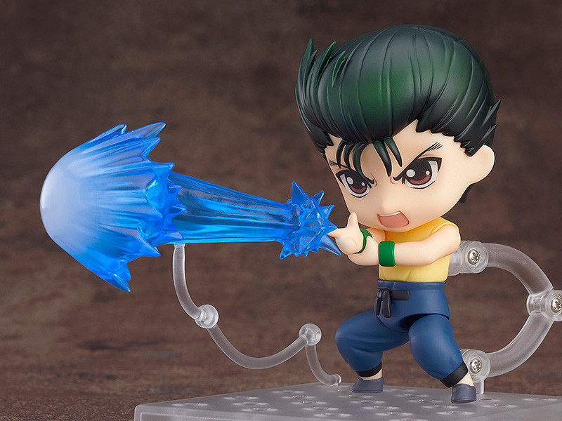 “The Other World’s not watching for nothing!” From the anime series “Yu Yu Hakusho” comes a Nendoroid of the Spirit Detective protagonist Yusuke Urameshi! He comes with three face plates including his confident standard expression, his intense shouting expression and his joking expression. For optional parts, he comes with Spirit-Gun and Spirit Shotgun effect parts as well as Puu and an interchangeable front hair part to display him with his bangs down. Be sure to add him to your collection!