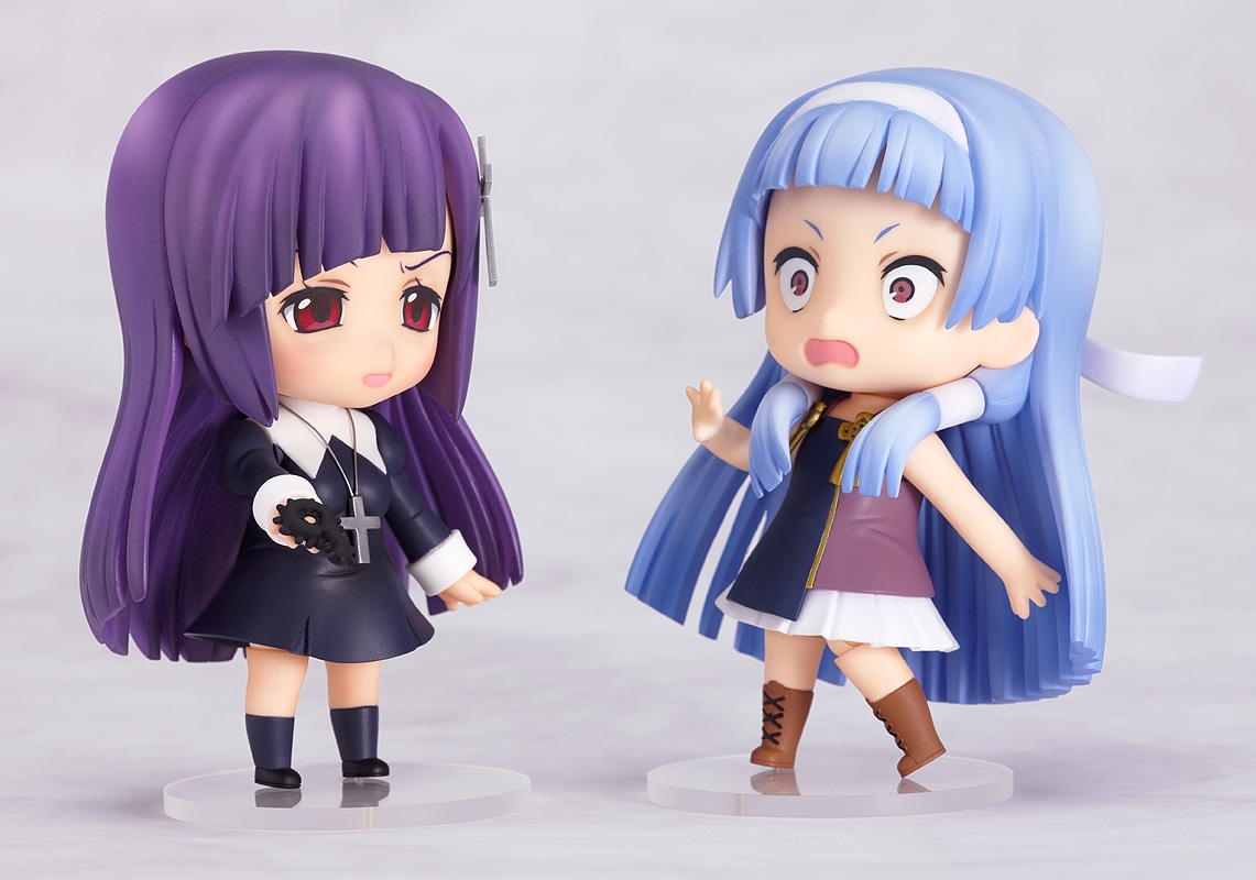The heart-warming idol. Following Nagi from the popular anime “Kannagi” comes a Nendoroid of Zange-chan! Yet another goddess, but this time the one who possessed the shy Hakua Suzushiro. Two replaceable face parts are included, one to bring out Zange-chan’s malicious expression, and another one for her ‘blank’ expression. It also wouldn’t be Zange-chan without her ‘One Time for 100 Yen’ sign, as well as two impurities that she can place in her hands. Displaying her togther with her sister will complete the twins in one of their most adorable forms yet!