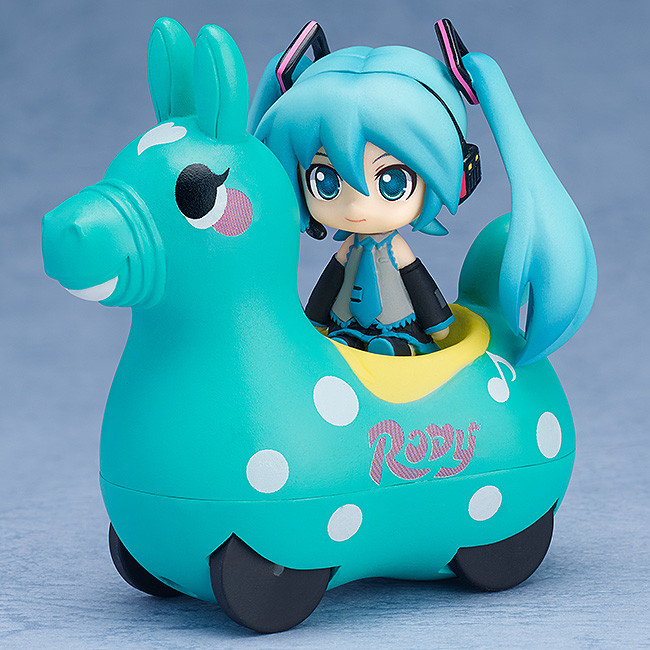 A lovely collaboration between Miku and Rody! The famous toy horse created in Italy ‘Rody’ as well as the Nendoroid Plus series of Vocaloid characters are being released together as a collaboration project! Hatsune Miku, Kagamine Rin, Kagamine Len and Megurine Luka are all available and each come with a CuteRody that matches up with their image color. The CuteRody horses are also made as pullback cars allowing you to give the Vocaloid characters an adorable ride as well!