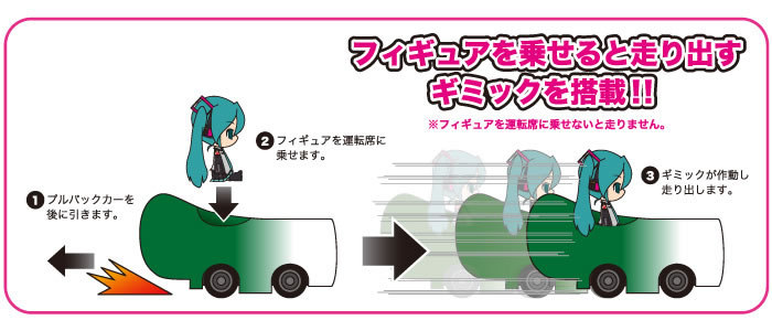 Miku’s heading this way in a leek car! A brand new idea is here to join the Vocaloid Nendoroid series, filled with an all new playful spirit! The Nendoroid Plus versions of Miku Hatsune, Rin Kagamine, Len Kagamine and Luca Megurine have all been made even smaller than before, and now each ride a pull-back car based on a specific item that has some meaning to them – Miku has a leek car, Rin and Len are both driving road rollers, and Luca is a tuna-shaped car! The cars are all loaded with a mechanism that allows them to start accelerating as the Nendoroid character is placed in the car – just pull the car back, place the character in the driver’s seat, and watch it drive forward! VOCALOID is a registered trademark of the YAMAHA Corporation.