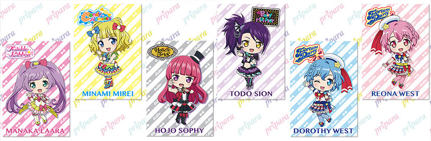 A selection of goods from PriPara! ■Nendoroid Plus PriPara T-Shirt ■Nendoroid Plus Acrylic Keychain SoLaMi?SMILE Set/ Dressing Pafé Set ■Nendoroid Plus Rubber Strap: Pripara Manaka Laala / Minami Mireille / Houjou Sophie / Dorothy West / Leona West / Faruru ■Nendoroid Plus Multistand Set: Pripara/Faruru ■Nendoroid Plus Clear Files Manaka Laala / Minami Mireille / Houjou Sophie / Dorothy West / Leona West ■PriPara Bromide Set ■PriPara Post Card Sets (A/B/C/D/E)